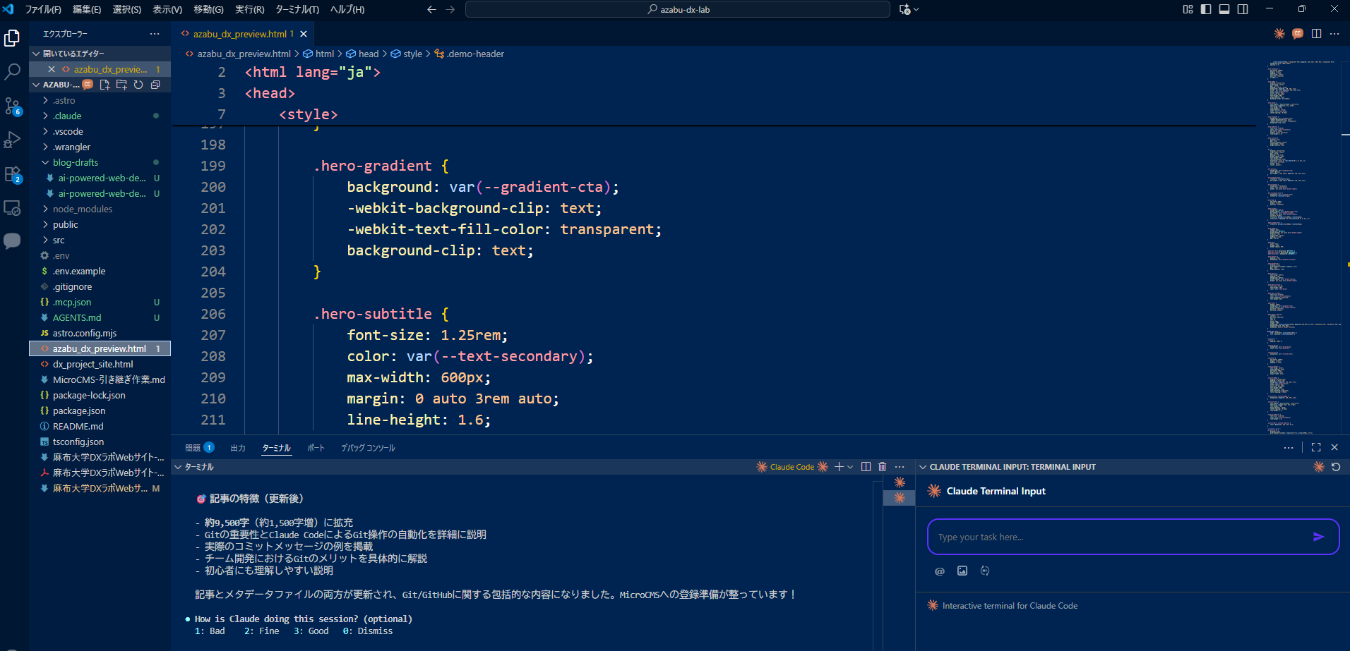 多くの方がそう思われるかもしれません。しかし、2025年の今、AI技術の進化により現実のものとなりました。この記事では、Claude Codeという革新的なAIアシスタントとの協働により、麻布大学DXプロジェクトの公式Webサイトを構築した開発プロセスの概要をお伝えします。